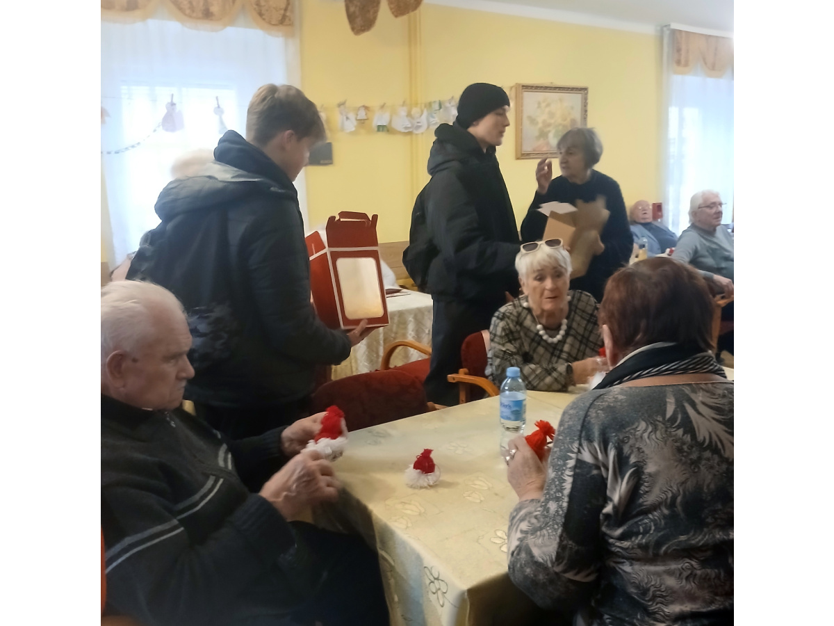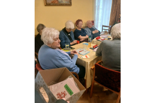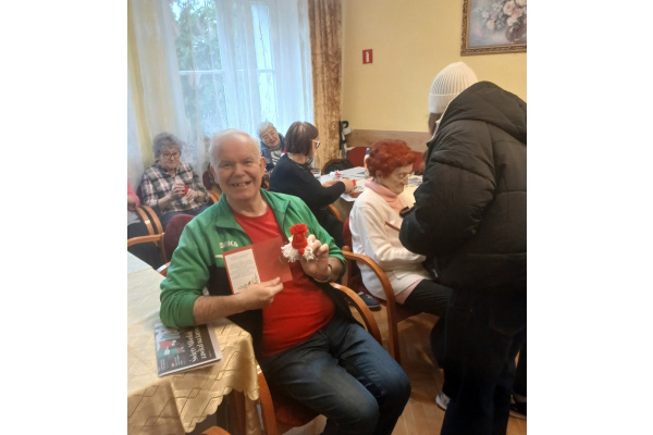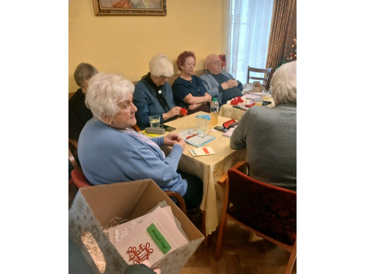 15 grudnia uczestnicy projektu „Aktywni razem – wolni od uzależnień” przekazali własnoręcznie przygotowane ozdoby i kartki świąteczne Seniorom z DDP przy ulicy Jodłowej 14.