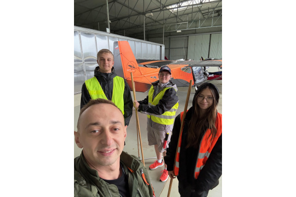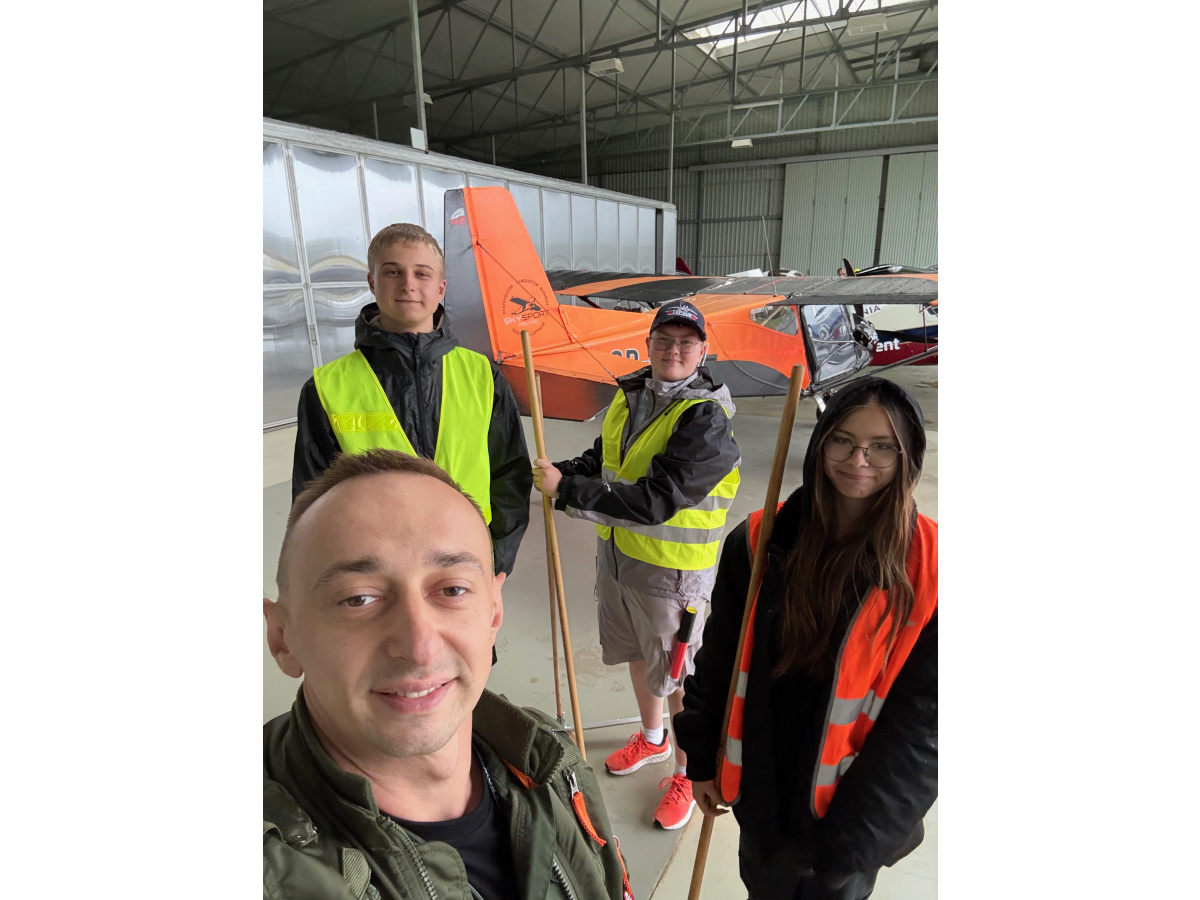 Nasi uczniowie wraz z pracownikiem Państwowej Agencji Żeglugi Powietrznej zadbali o wyznaczenie dróg kołowania oraz miejsc do parkowania samolotów.